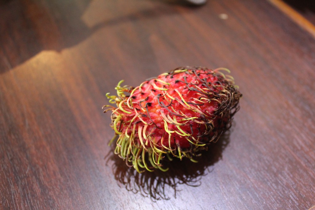 - Fruta Ngo o Rambután, aunque su aspecto externo es algo extraño, lo de dentro, que es lo que se come, me supo parecido a una uva sin piel.
