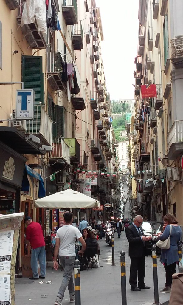 Desde Via Toledo se puede acceder al Quartieri Spagnoli. (El barrio Español). La ciudad de Nápoles ha estado al mando de los españoles en varias épocas de la historia, por lo que no es nada raro que en el centro histórico encontremos un barrio con este nombre. Las calles en esta zona son estrechas y vas a ver largas escaleras, también muchos comercios y vas a ver la ropa colgada en los balcones, algo muy característico de aquí. También hay que decir que se le conoce como un barrio un poco conflictivo, y dónde más robos hay, pero teniendo cuidado, se puede visitar sin problema.