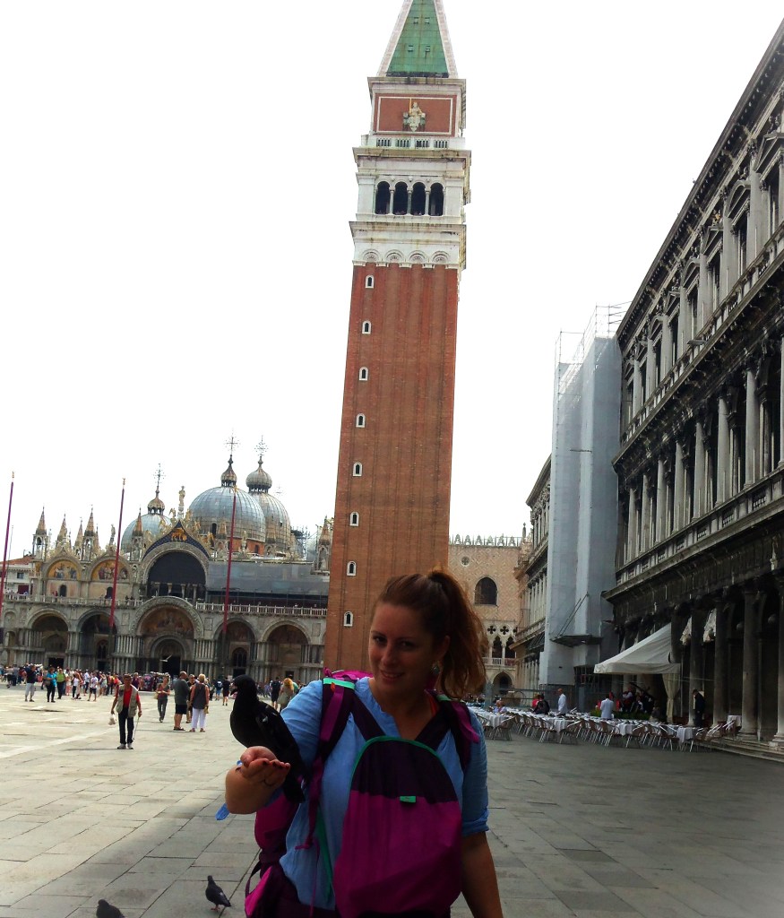 PLAZA SAN MARCOS, apenas bajé del tren fui directo a la Piazza San Marco. Fue la primer plaza de Venecia que visité y la única. Resulta que Venecia sólo tiene una plaza y es ésta. Es un espacio bien amplio en el corazón de Venecia y bautizado por Napoleón Bonaparte como «el salón más bonito de Europa». Aquí se realizan los eventos más importantes de la ciudad. Está siempre lleno de palomas y gente que te vende comida para echarles, como pasa en el Parque María Luisa de Sevilla, si has estado allí alguna vez, entenderás de lo que hablo.