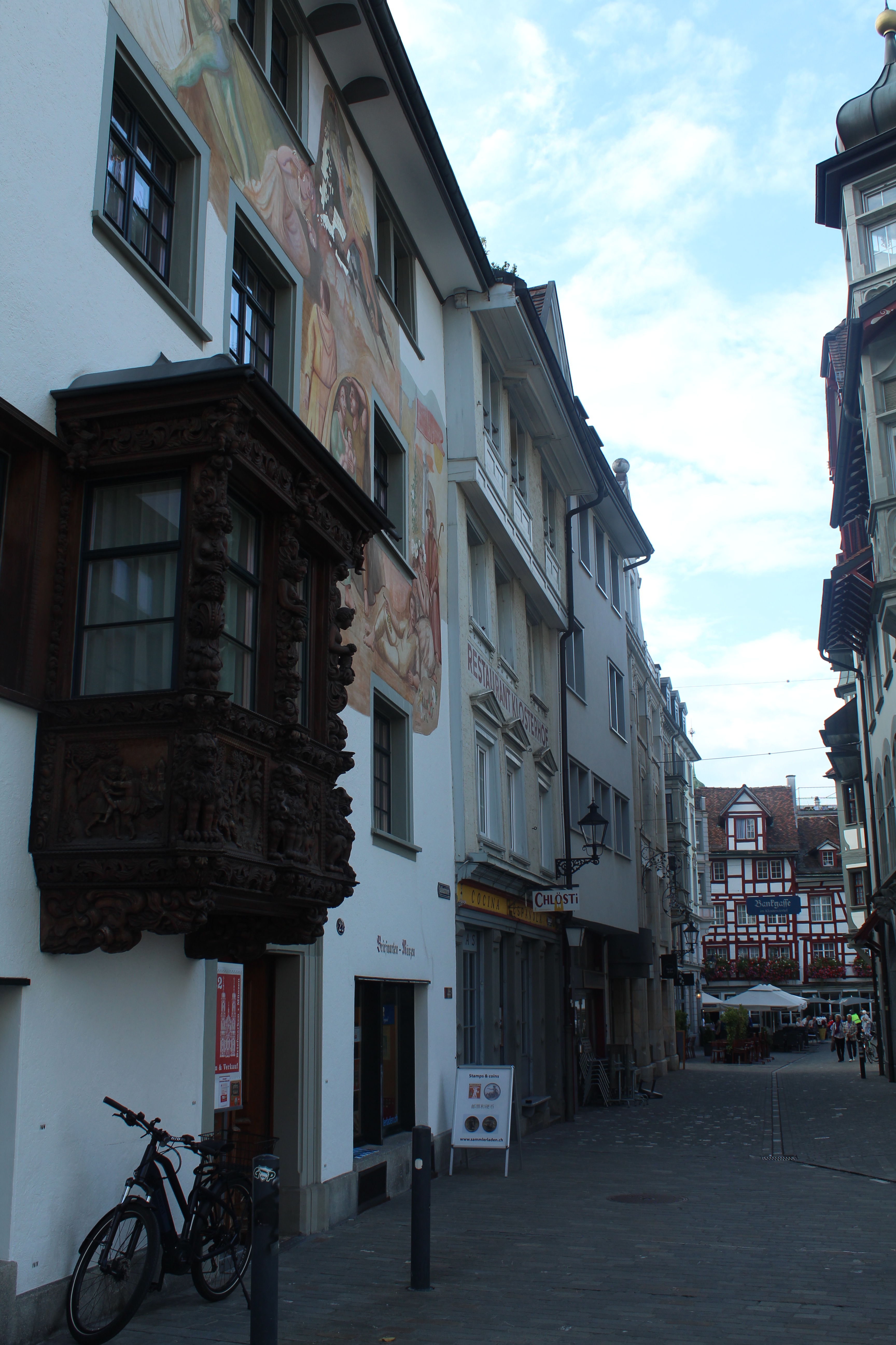 - LIBRARY ABBEY: Lo que me motivó para ir hasta San Galo fue esta joya de la ciudad. Su biblioteca medieval barroca que parece salida de una película de Harry Potter. Esta biblioteca es una de las más ricas y antiguas del mundo y posee valiosos manuscritos, entre los que figura el más antiguo de los planos arquitectónicos en pergamino hallados hasta ahora. Yo llegué 20 minutos antes de que cerraran sus puertas al público, 16:40 y la última admisión es a las 16:45! Entré por los pelos! (me bajé del tren y me perdí, no tenía internet, tuve que pedir ayuda, pero al menos llegué para verla).
