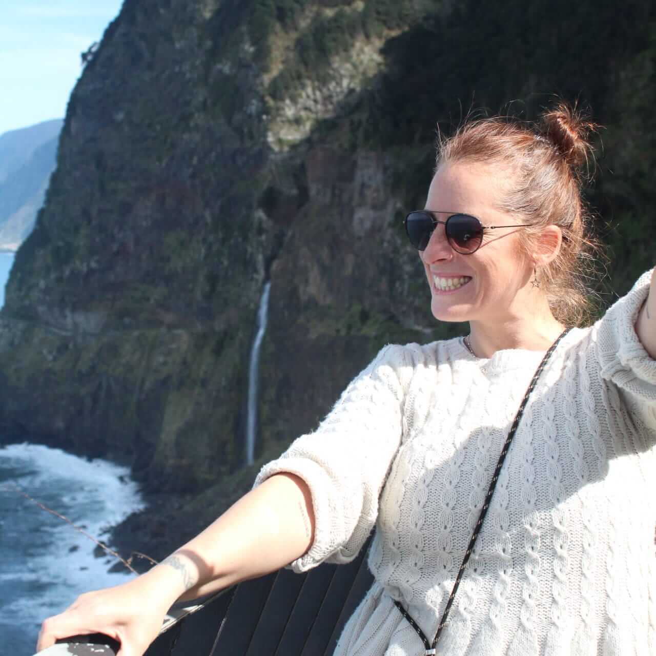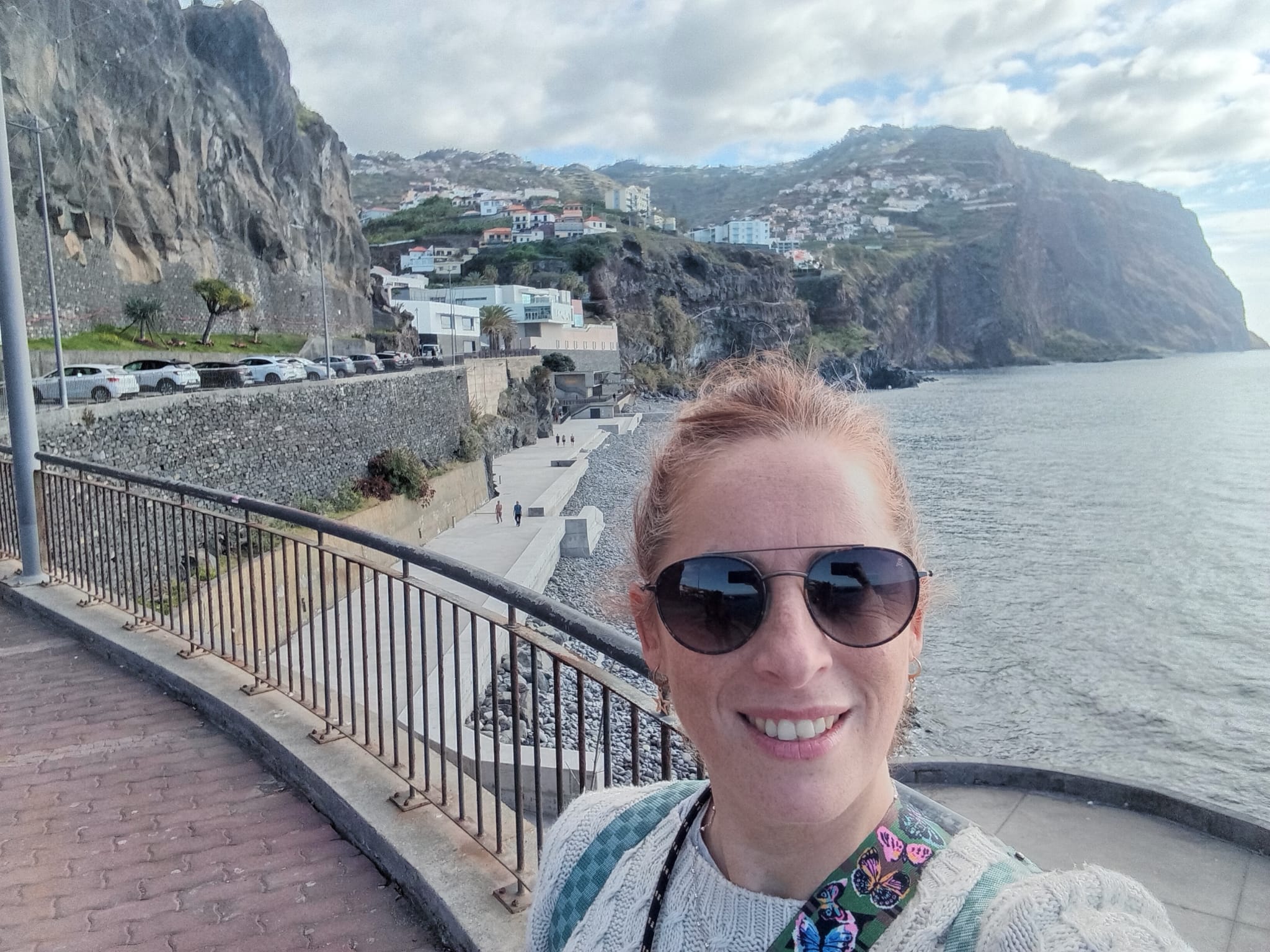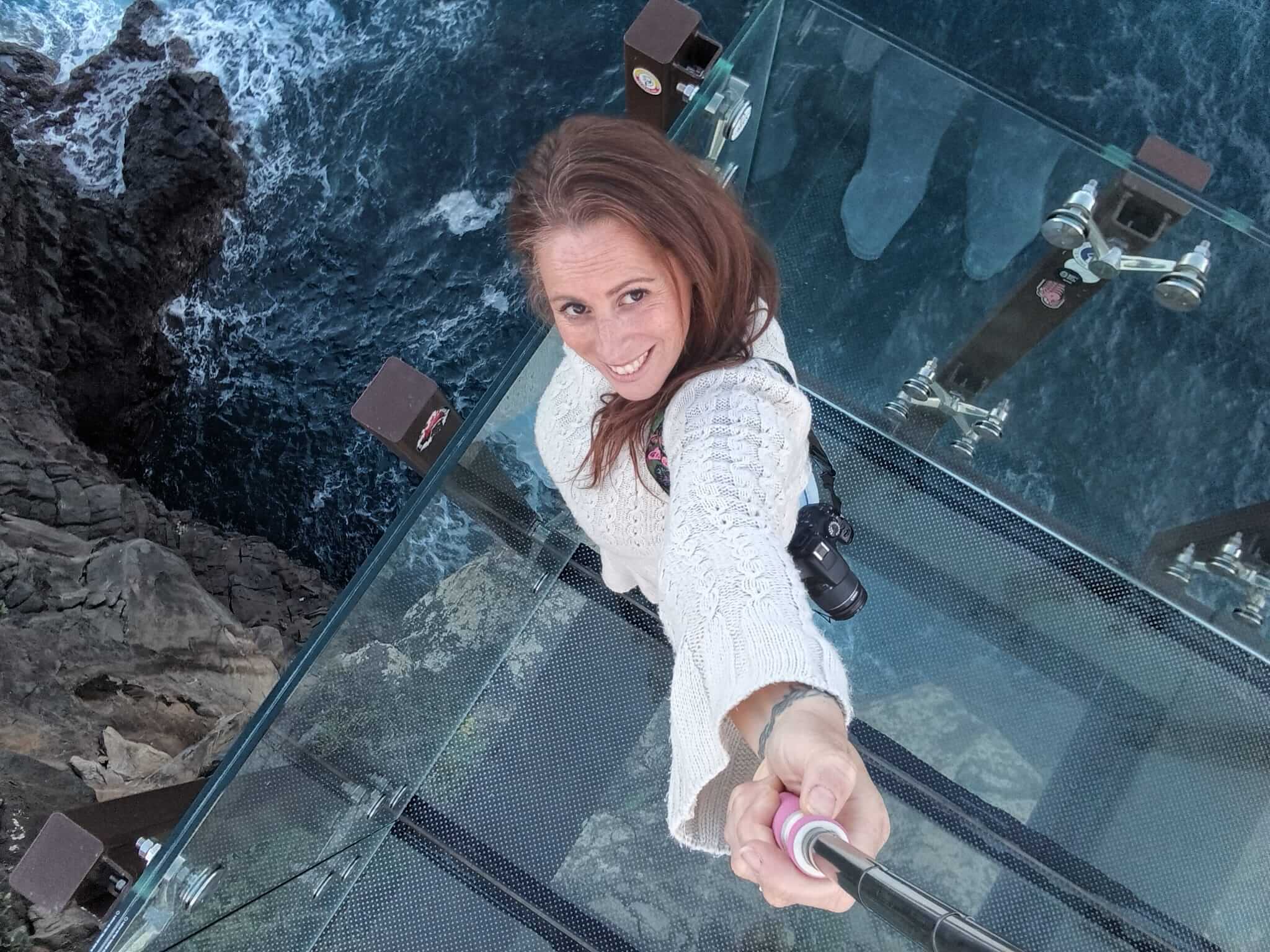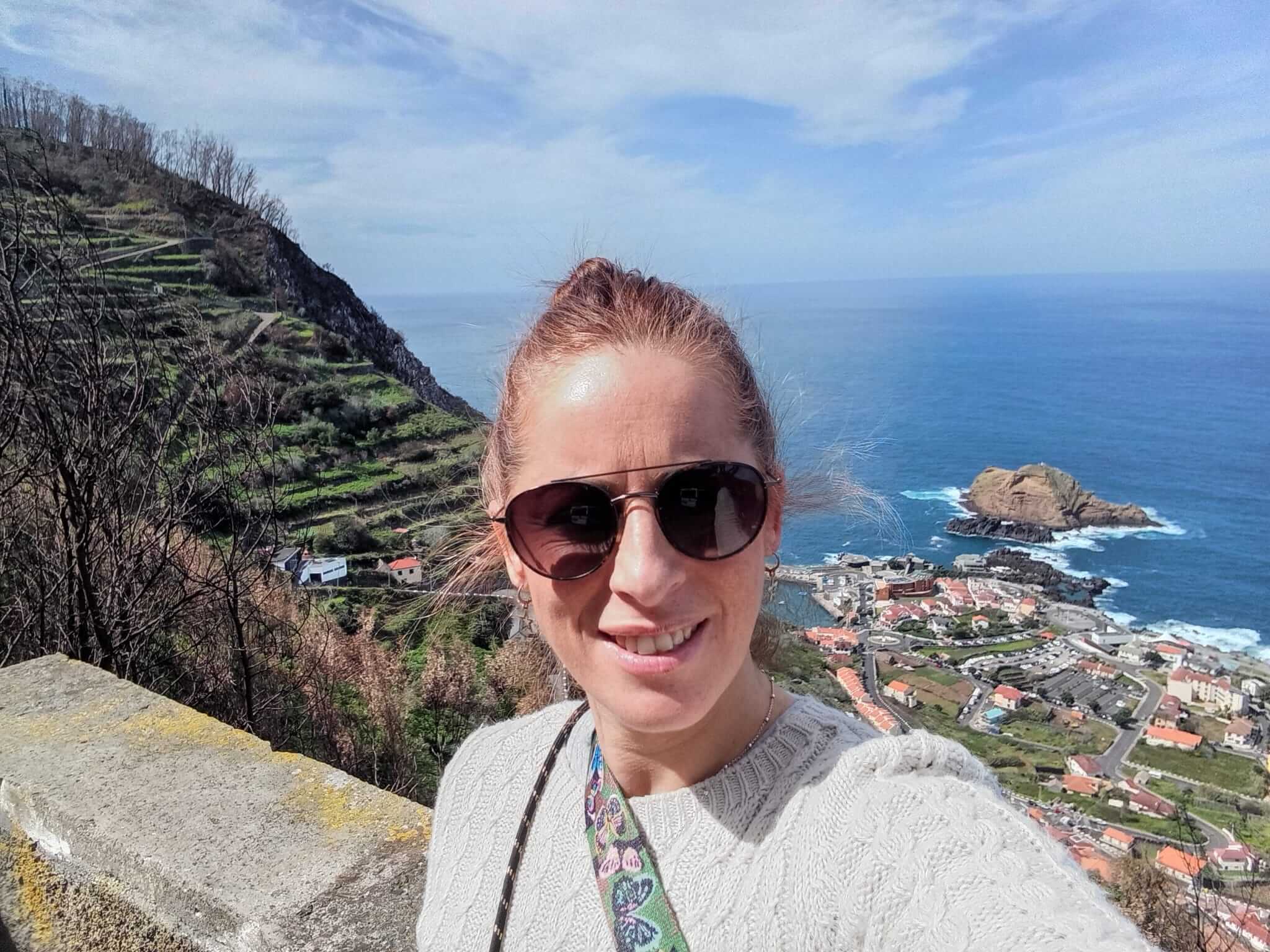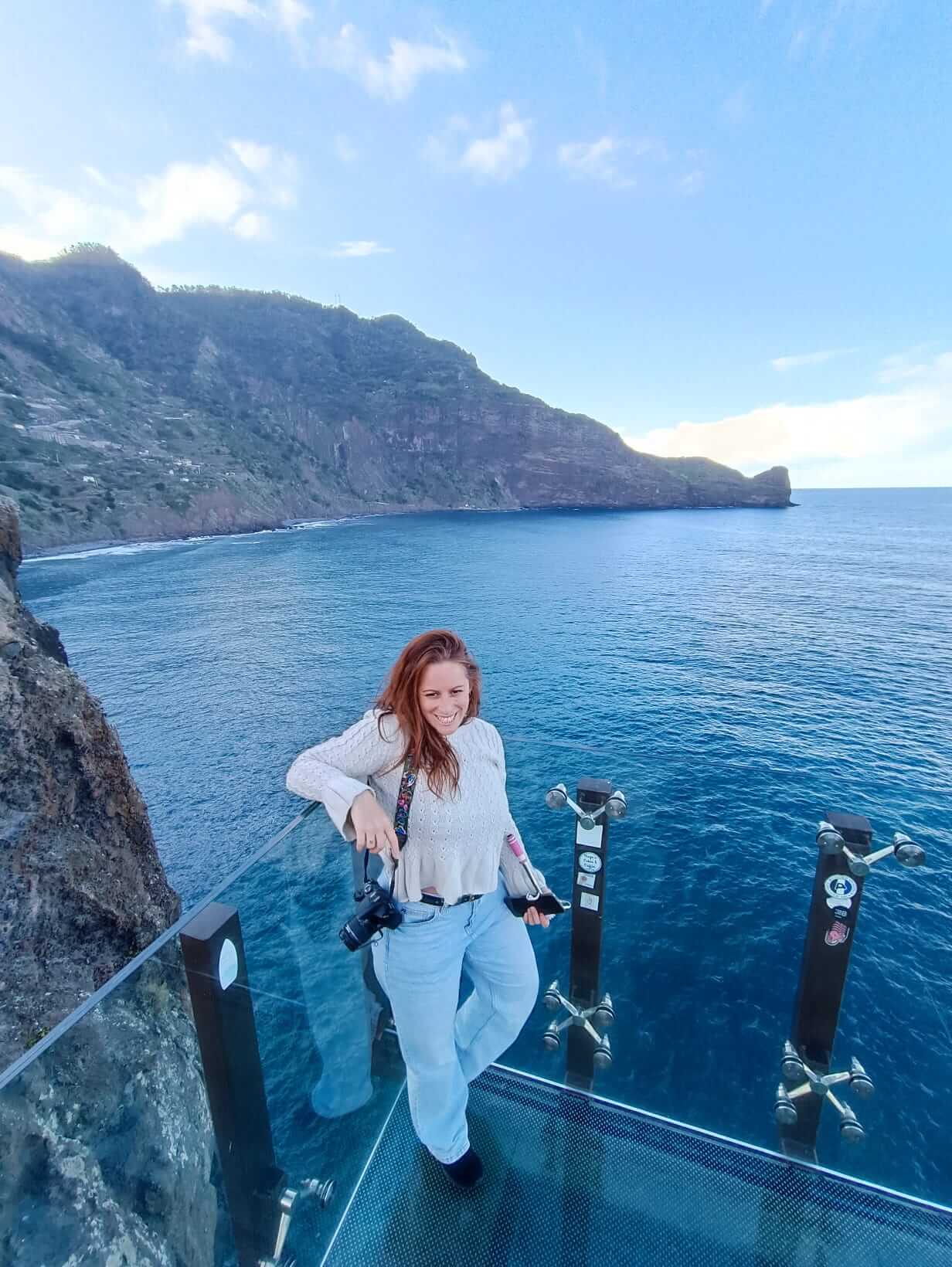 Este mirador de cristal es al que suelen ir los tours organizados, por lo tanto cuando llegas está lleno de gente y además es de pago. Pero yo te voy a recomendar un mirador GRATIS y que rara vez está lleno, es menos conocido porque es relativamente nuevo (2022) y para mi gusto es todavía más bonito que el de Cabo Girão. Es el MIRADOR DE GUINDASTE, muy cerquita de Praia do Faial. Te enseño las fotos para que puedas comparar y decidas cual te gusta más.