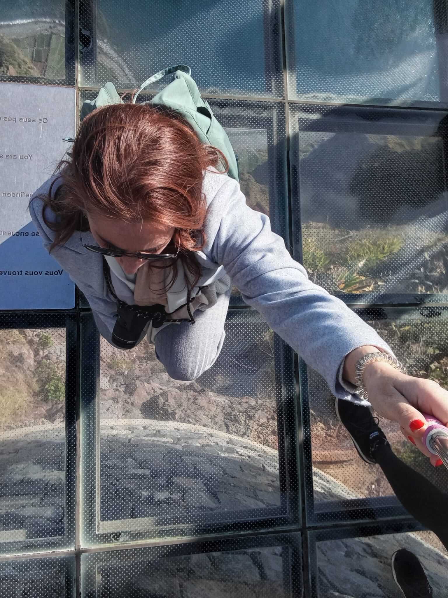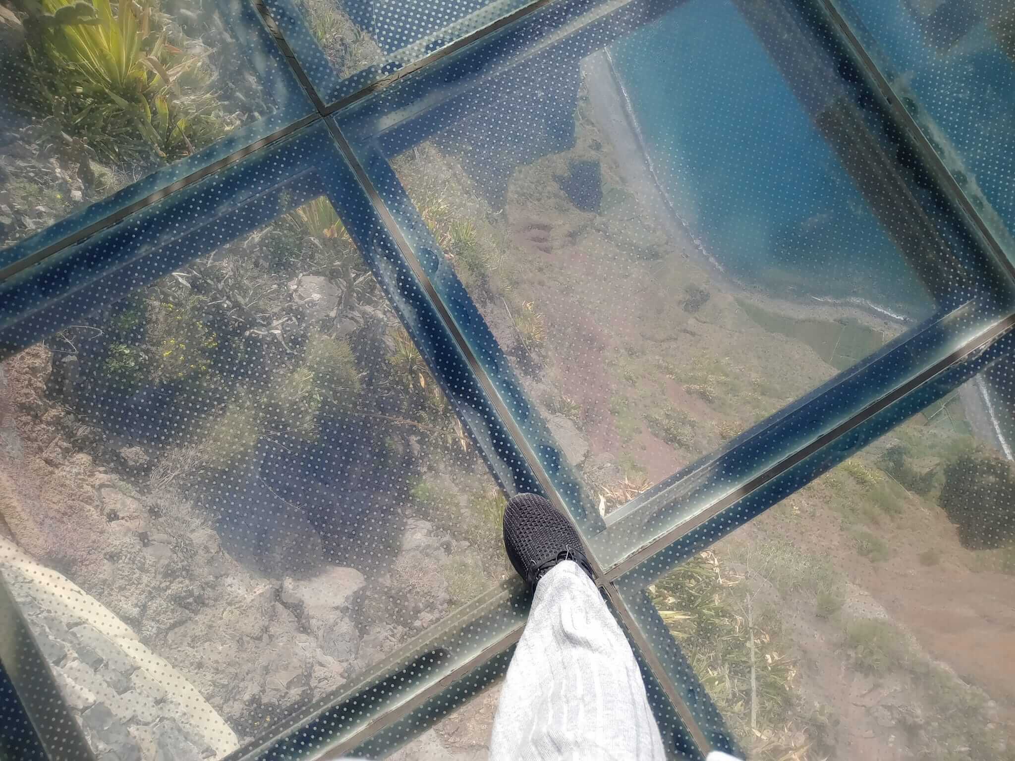 CABO GIRÃO, aquí se encuentra una plataforma de cristal suspendida en un acantilado, es momento foto📸. Para poder acceder a la plataforma debes pagar un ticket de 2€. Si no sufres de vértigo te lo recomiendo porque estarás a 580 metros sobre el nivel del mar. Además de las vistas hacia abajo, tienes unas vistas muy bonitas a la montaña, pero eso es algo que vas a tener en casi cualquier parada, la isla entera es una postal.