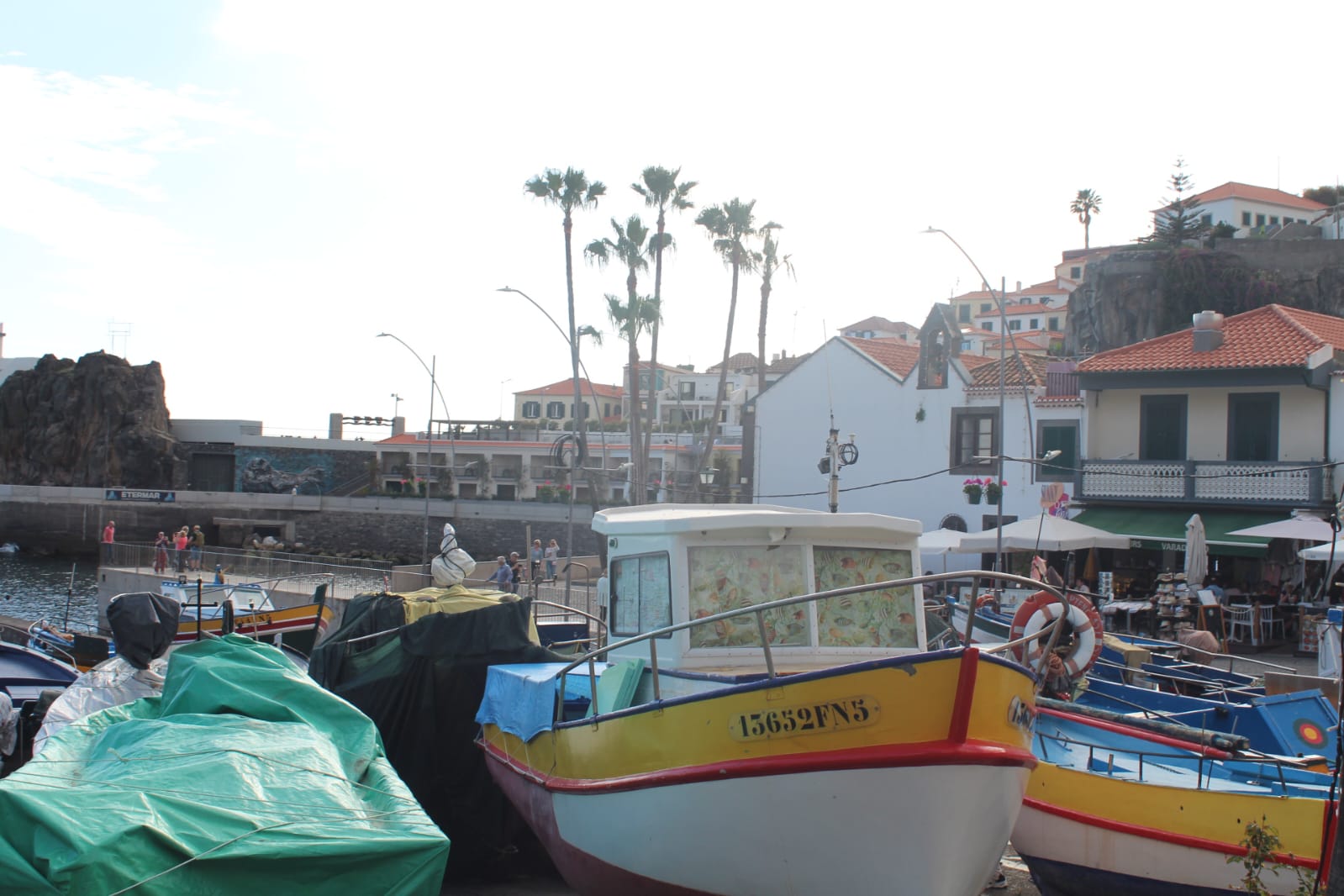 CÃMARA DE LOBOS, ya volviendo a la capital puedes hacer una última parada en este encantador pueblo pesquero. Conocido por sus coloridos barcos de pesca, estrechas calles empedradas y acogedores restaurantes, es un lugar perfecto para sumergirse en la auténtica vida isleña. Se puede pasear por el puerto, probar el famoso vino de Madeira (Henriques&Henriques) en una de las bodegas locales y disfrutar de las impresionantes vistas al mar desde los acantilados cercanos. Algo que me llamó la atención de la gente local aquí en Madeira es que se juega muchísimo a las cartas, en bares, restaurantes, en el parque, en un banco, pero en Câmara de Lobos todas las mesas de los bares estaban llenas de gente jugando a las cartas. No te saltes este pueblito que está muy cerquita de Funchal y tiene mucho que ver.