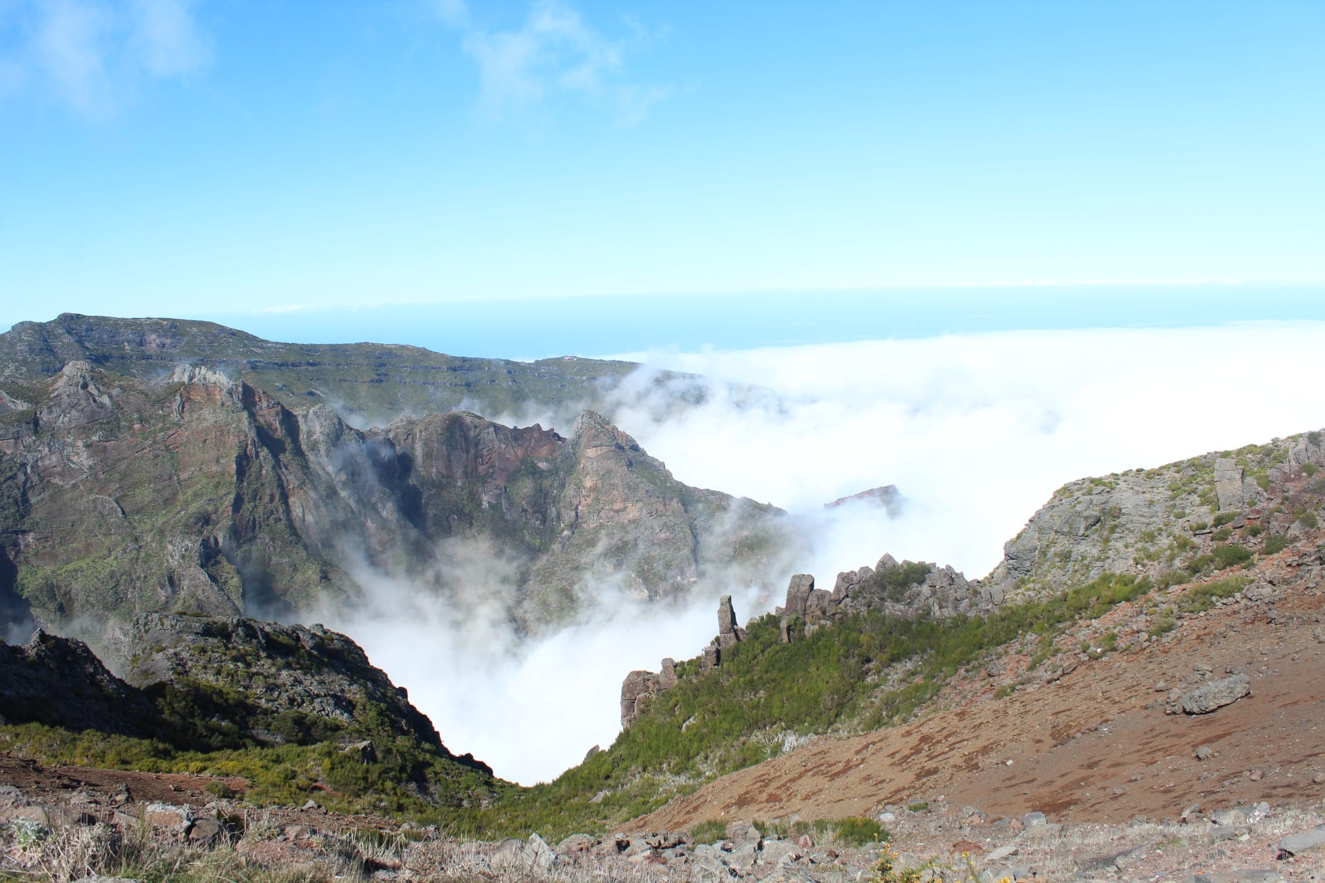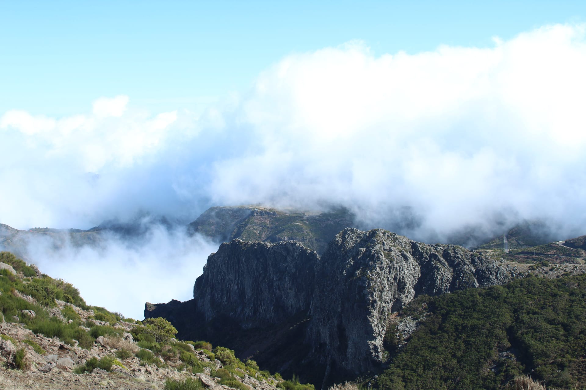 PICO DE ARIEIRO, esta fue la última parada y para mi la más bonita y las más impresionante. Aunque tengo que confesar que he pasado algo de vértigo, no podía quedarme sin ver este paisaje de cerca. Se trata de el pico más alto que se puede acceder en coche, unos 1818 metros de altura. Tiene dos miradores y es espectacular, las vistas a la montaña sobre un mar de nubes es asombroso.