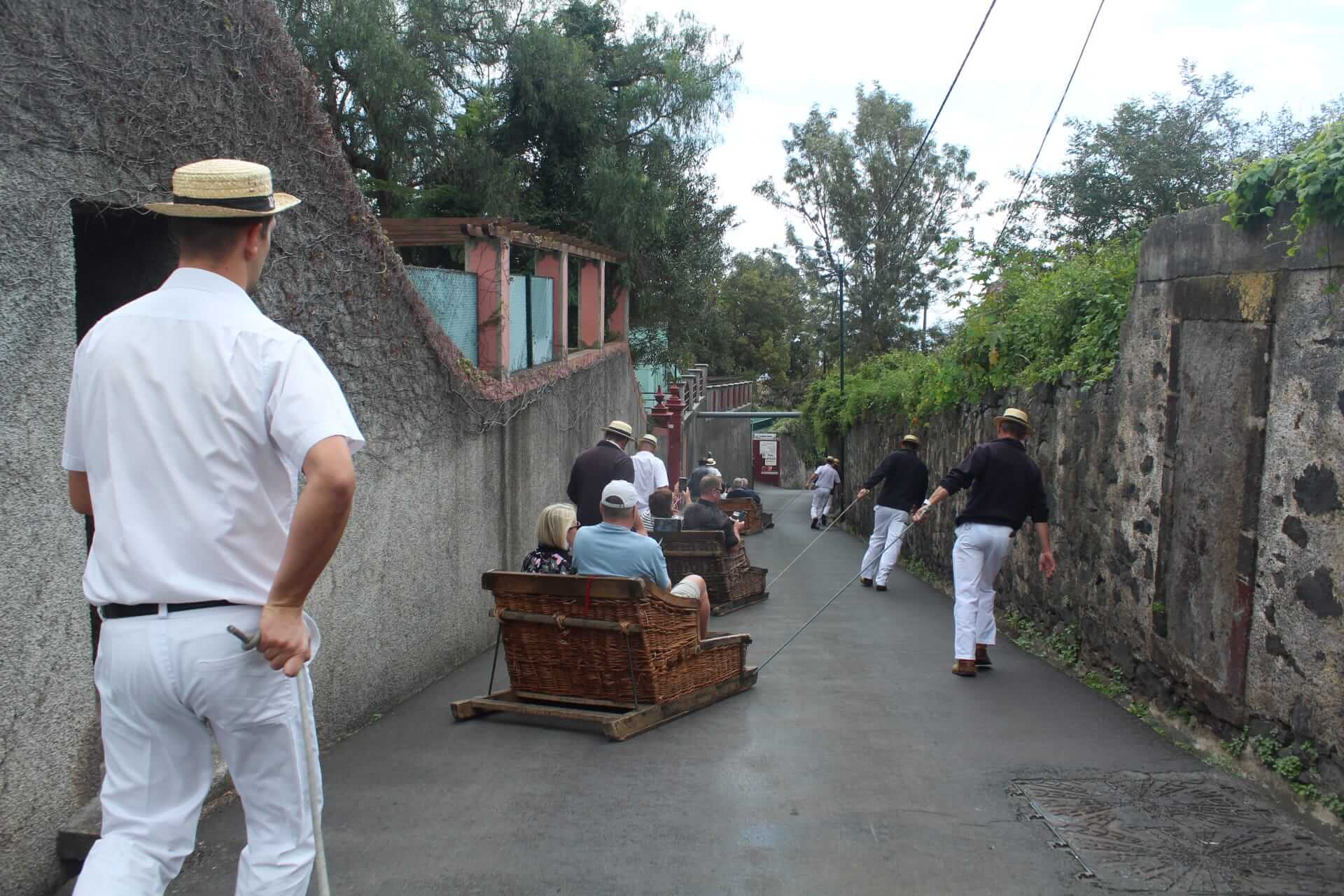 CARREIROS, no hay nada más turístico en la isla y más conocido que LOS CARREIROS DO MONTE, es un descenso en cestas de mimbre con orígenes en el siglo XIX, época en que estos cestos eran utilizados por los habitantes de la isla como medio de transporte veloz, para bajar de Monte a la ciudad de Funchal. Desde entonces los caminos de Monte se convirtieron en una de las mayores atracciones turísticas de la isla. Los carros son conducidos por dos hombres vestidos de blanco y sombrero de paja y el trayecto que realizan es de 2km en aproximadamente 10 minutos. Comienza en lo alto de Monte y termina en Livramento. Es un paseo bastante diferente y emocionante ya que puede alcanzar los 30km/hr. Si quieres que sean ellos los que te bajen de Monte, prepara 27.50€, si compartes la silla con alguien son 35€.