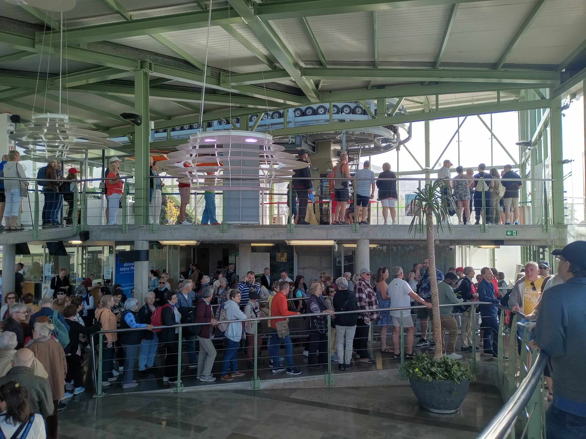 El Funicular: empieza a funcionar a las 9:00 hasta las 17:45. Mi consejo es que vayas incluso antes de las 9 de la mañana y si llevas el ticket comprado en la web mejor aún. Es impresionante la cantidad de gente que se acumula en un momento. Yo fui poco después de las 9a.m. y ya estaba llenísimo. Lo bueno es que una vez que empiezan a montar a las personas, la fila se mueve bastante rápido. En cada cabina caben 6 personas. Y se tarda entre 15 y 20 minutos en subir.