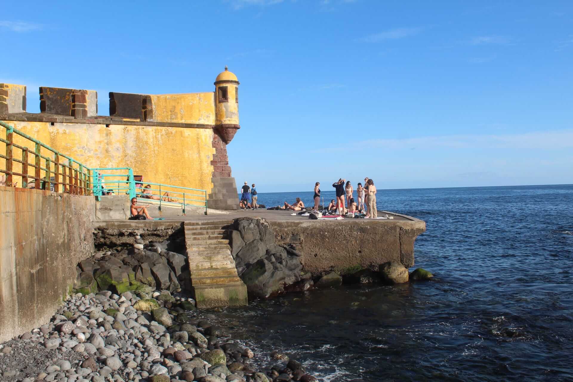 PONTA DO SOL, es conocido por ser el municipio más caluroso, el que más horas de sol tiene al año. Allí se cultivan algunos de los productos más famosos del archipiélago, como el plátano y la caña de azúcar. Este municipio es también la única meseta de Madeira, se trata de Paúl da Serra. Mientras estaba visitando este sitio había chicos dándose chapuzones, tirándose desde las rocas, algo muy habitual en el este lugar.