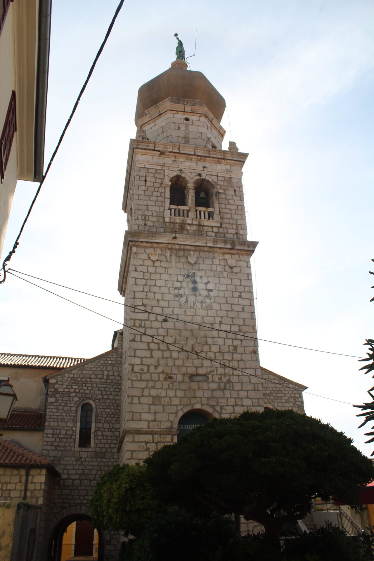 ✨Ayuntamiento de Krk: en esta misma plaza se encuentra el edificio del ayuntamiento, con su torre del reloj, con una esfera dividida en 24 marcas con números romanos y manecillas doradas.